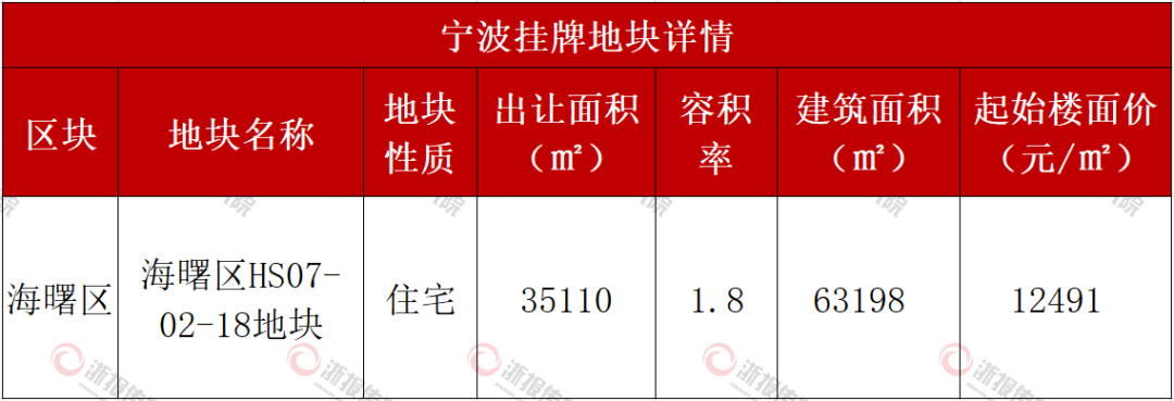 挂牌的海曙区HS07-02-18地块位于海曙天街南侧,距离在建地铁8号线南苑站仅400米,出让面积35110㎡,容积率1.8,建筑面积63198㎡,建筑限高27-54米(不含27),定于6月27日出让。