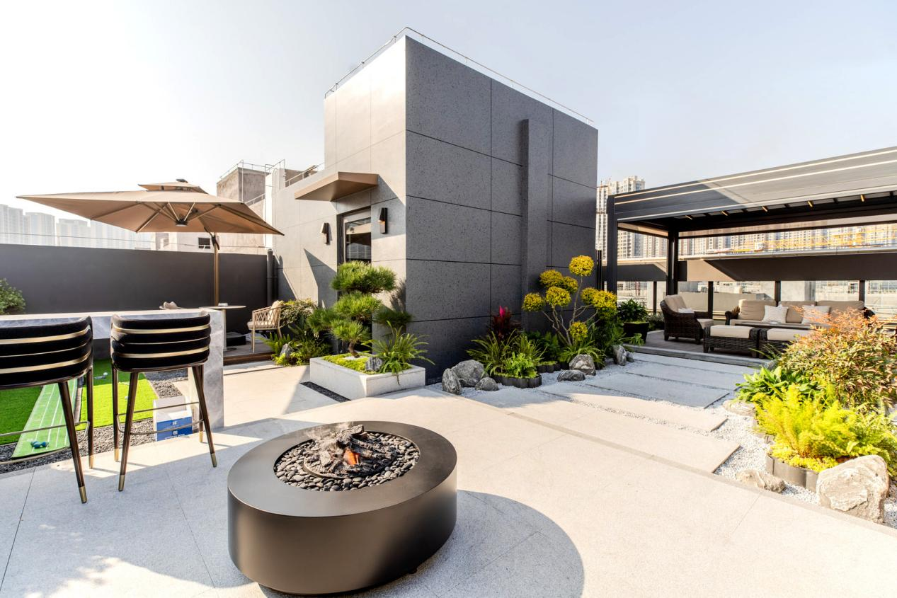 顶层大露台,视野开阔,空间灵活,可作为接待洽谈、员工休憩甚至是小型活动的场地,赋予了建筑额外的社交与休闲价值。
