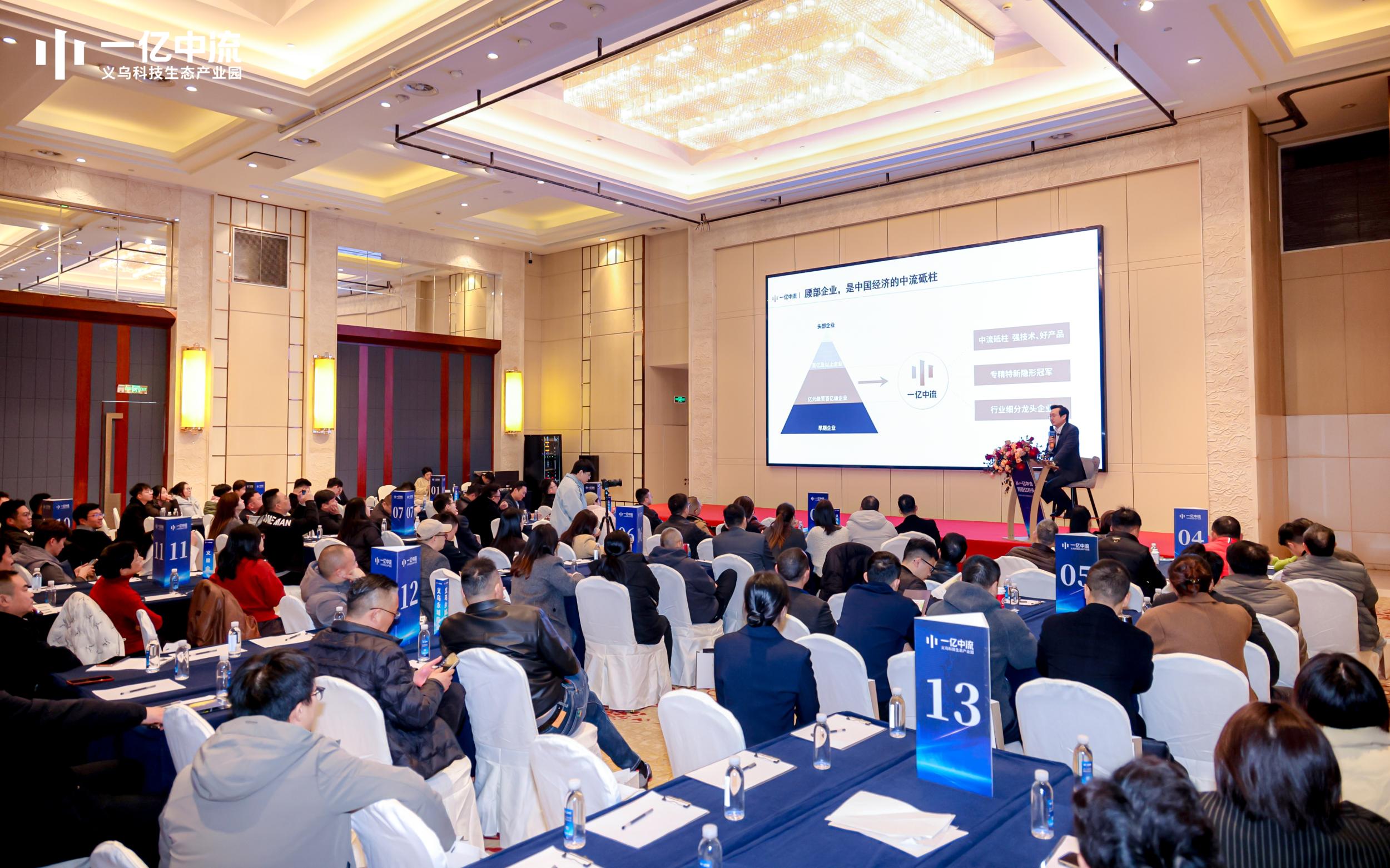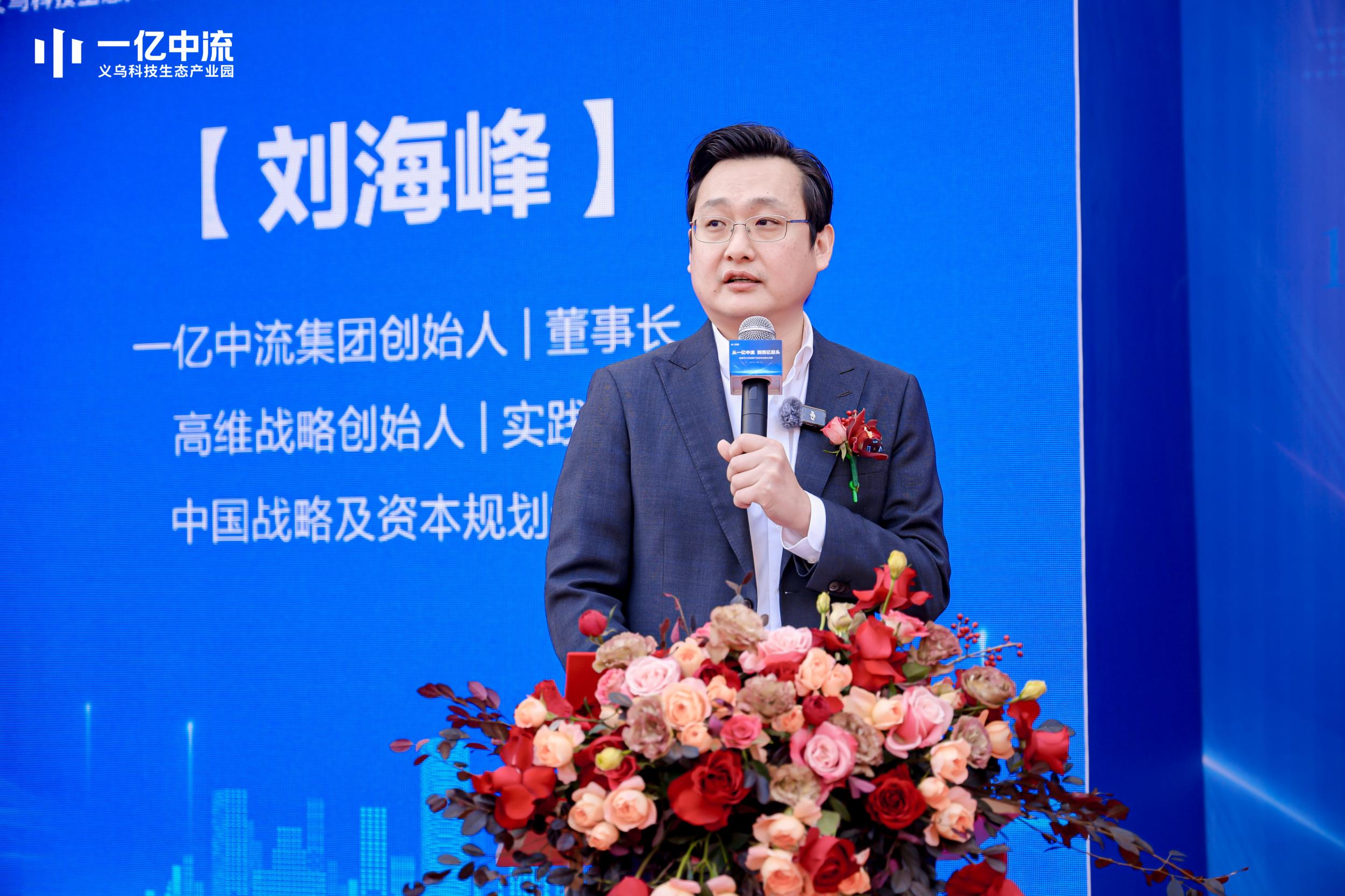 在隆重的主持开场后,一亿中流集团创始人|董事长、高维战略创始人|实践者、中国战略及资本规划专家刘海峰登台致辞。他历数了一亿中流的10年发展,是扎扎实实服务中国亿元企业家的10年,给予了建设一亿中流义乌科技生态产业园以底气。同时强调义乌天时地利人和的条件,将赋予优秀企业难得的大机遇!
